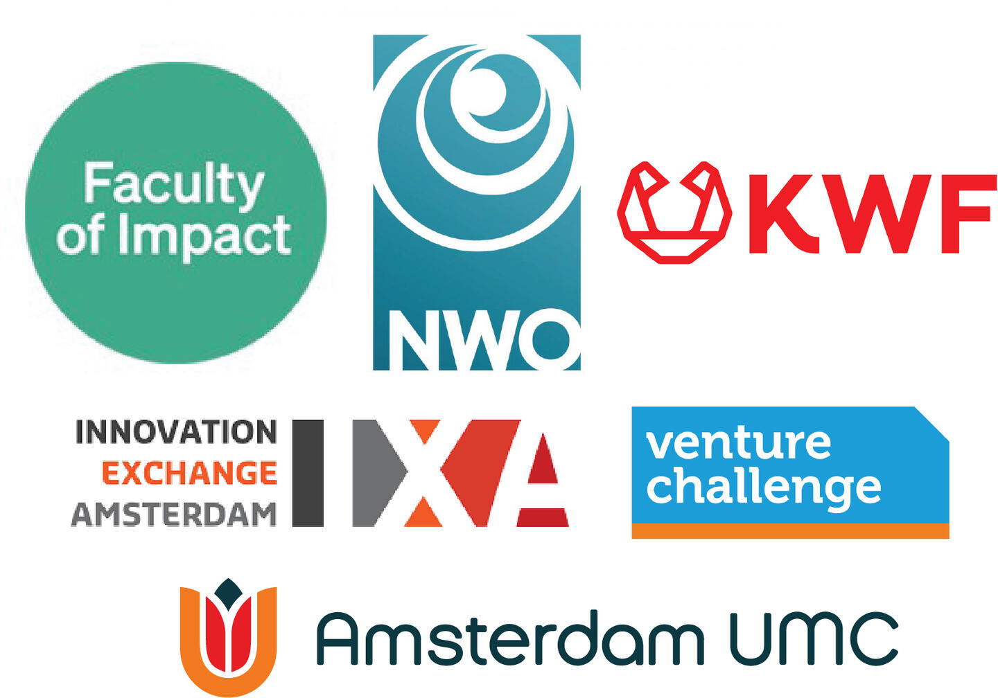 This initiative is supported by multiple programs and funding instruments including the NWO Faculty of Impact, Take-Off, Venture Challenge, KWF Dutch Cancer Society, and Innovation Exchange Amsterdam (IXA).